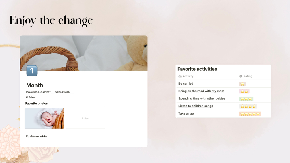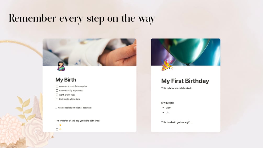 [Notion Template, Notion Dashboard, Notion Template Aesthetic, Notion Templates, Notion Planner, Notion Baby Journal, Notion Baby Diary, Baby Shower Gift, Baby Shower Present, First Year Baby Journal, First Year Baby Book, First Year Baby, Baby Record Book, Baby Milestones, Baby Memory Book, First Year Memory Book]