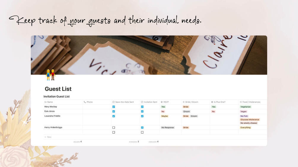 Have a look at https://magicalwedding.gumroad.com/l/notion_beginner_workbook